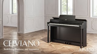 Celviano AP-550 integruje vysoce kvalitní zvukový zdroj multi-dimensionalní morphing AiR. Je vybaven 2kanálovým zesilovacím systémem se 4 reproduktory a vyznačuje se sofistikovaným designem, který zajišťuje přirozený rozptyl zvuku. Tento model umožňuje otevření horního víka klavíru, což má za následek působivě jasný, expanzivní zvuk připomínající otevření velkého víka klavíru.
